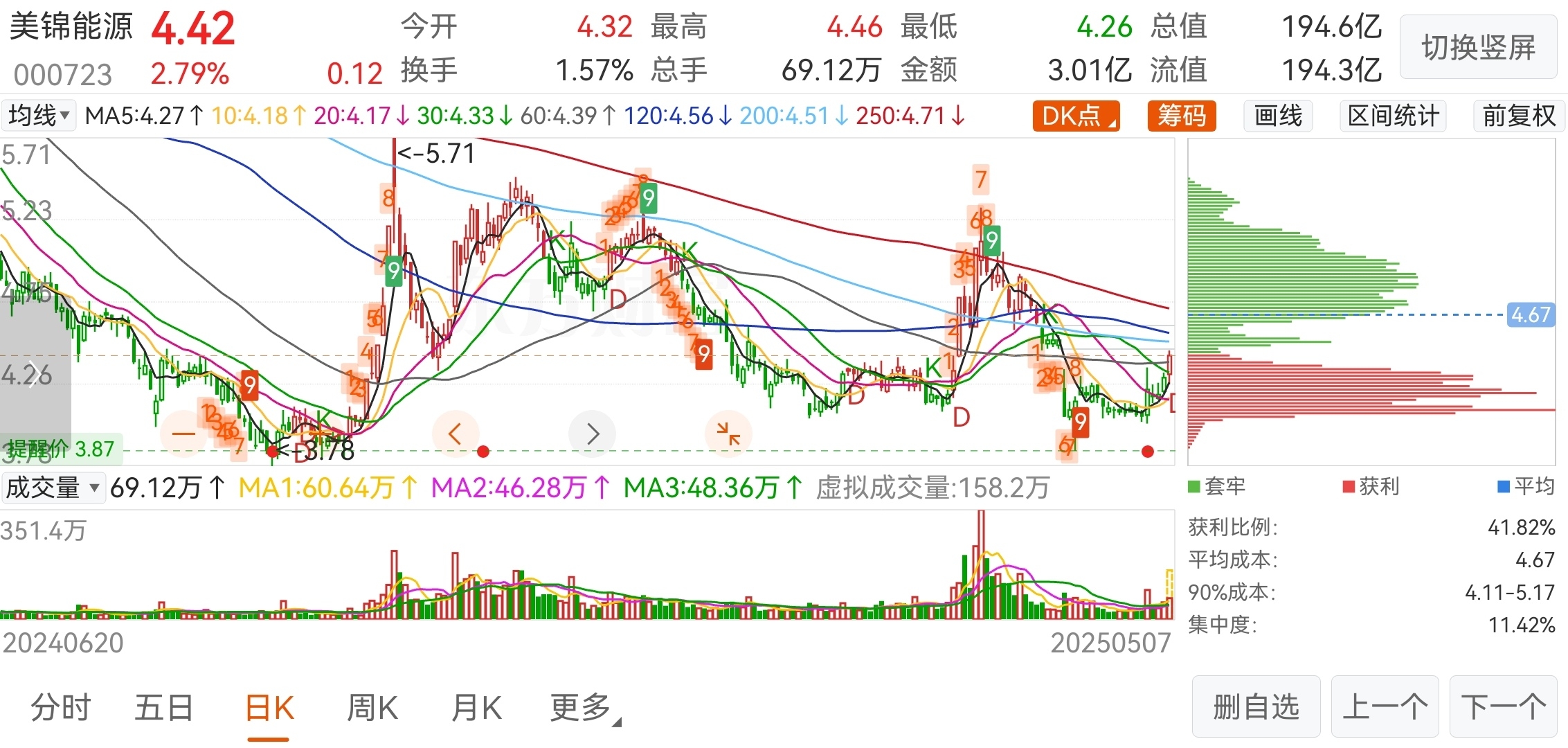 $美锦能源(SZ000723)$ 3.14以来,上方筹码只有小小的松动,没道理拉升