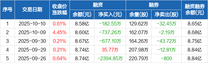 美锦能源:连续3日融资净偿还累计1596.91万元(10-10)