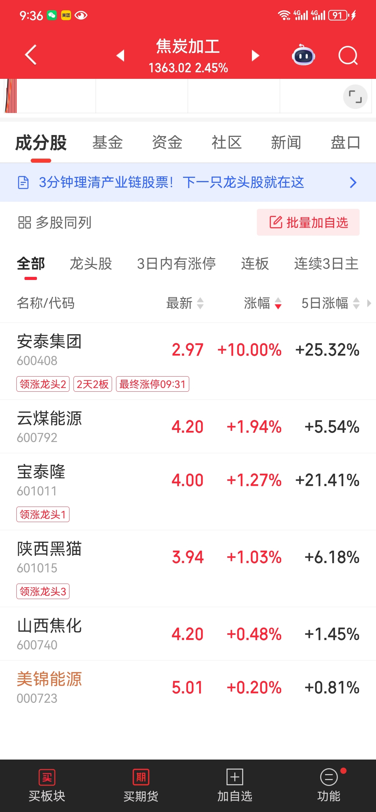 昨天和今天,垫底之王,业绩全靠焦炭,人气方面是大哥,涨幅方面是小弟,讲故事方面是