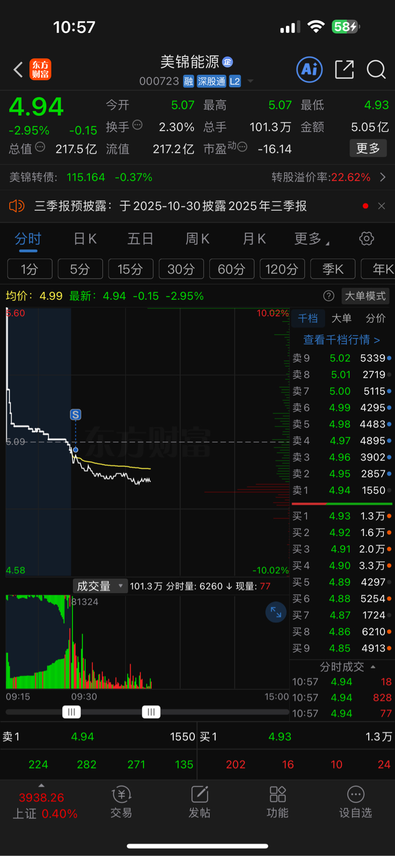 $美锦能源(SZ000723)$ 昨天进来就挨打