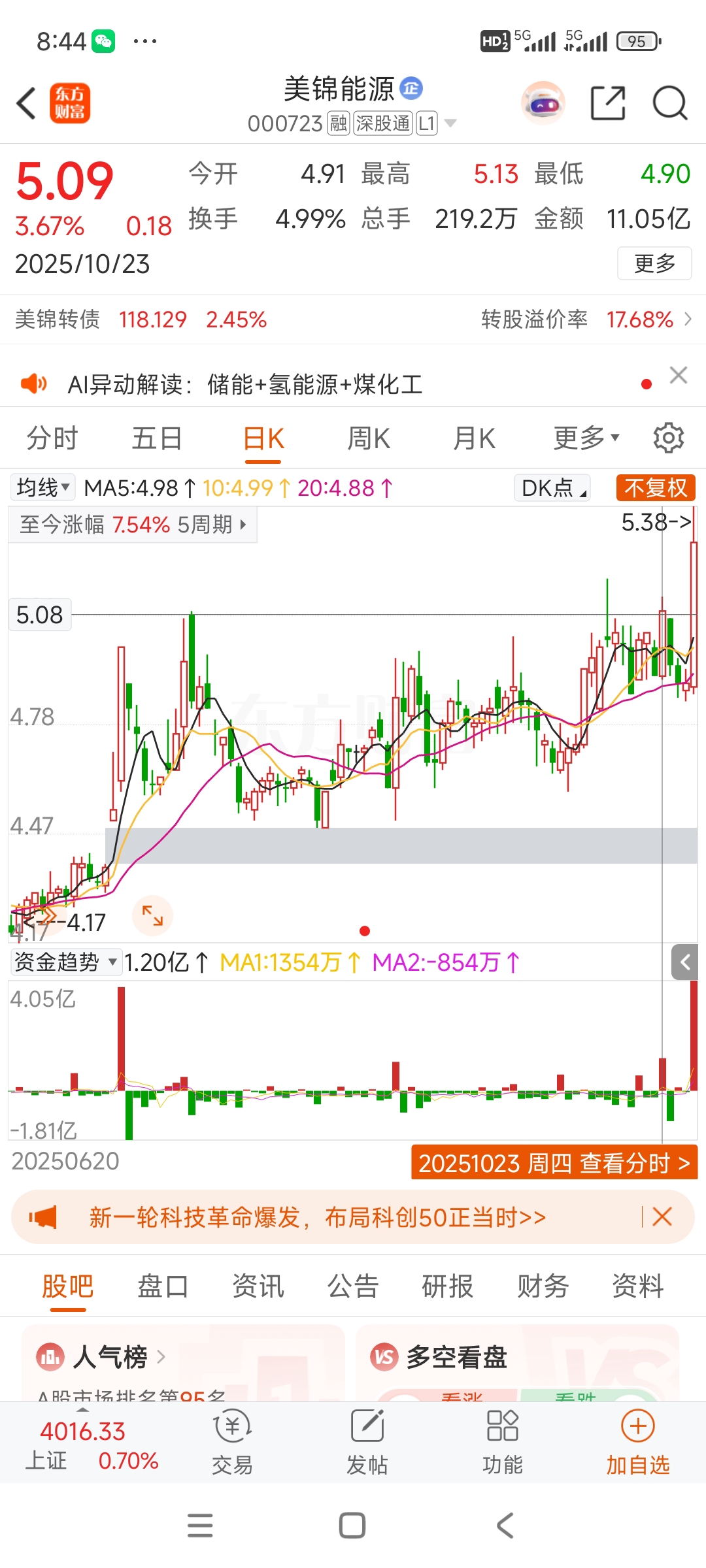 $美锦能源(SZ000723)$ 今天准备5.08再买点,不知能不能买到。