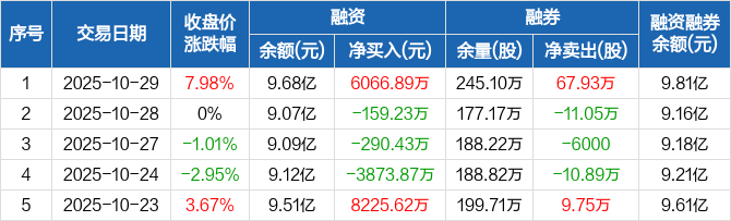 美锦能源:融资余额9.68亿元,创近一年新高(10-29)