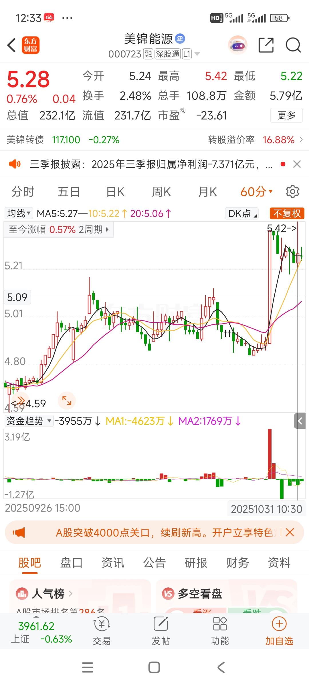 $美锦能源(SZ000723)$ 挂5.09不知下午能不能买到。