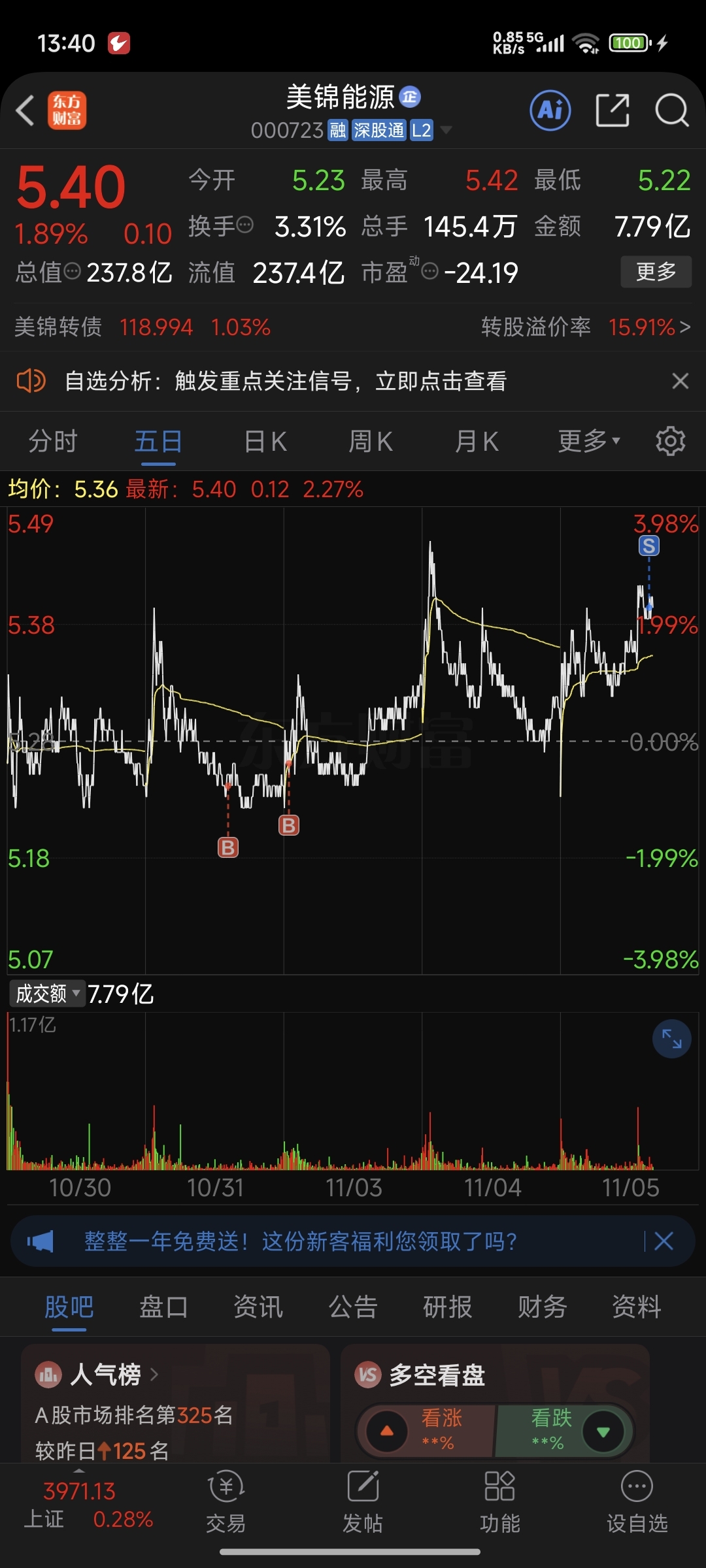 $美锦能源(SZ000723)$ 我也希望他涨停,但是有点墨迹,为了控制风险,出一半吧