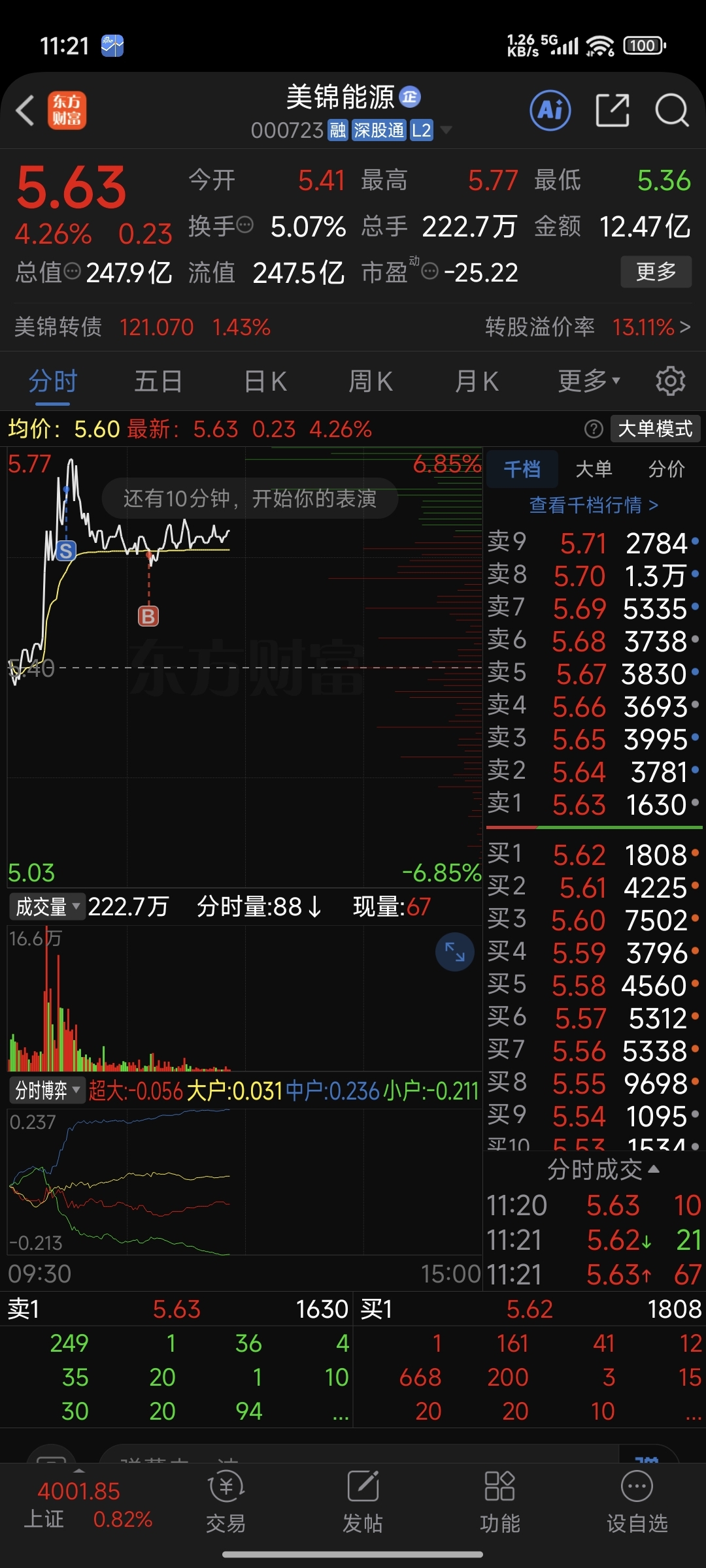 $美锦能源(SZ000723)$ 好票也需要日内做T,今天要是能封板,我甚至敢顶板