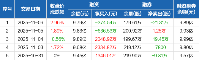 美锦能源:融资净偿还374.54万元,融资余额9.79亿元(11-06)