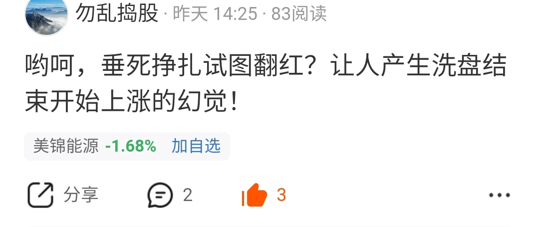 温馨提示: 1.根据《证券法》规定,禁止编造、传播虚假信息或者误导性信息,扰乱证券市场;2.用户在本社区发表的所有资料、言论等仅代表个人观点,与本网站立场无关,不对您构成任何投资建议。用户应基于自己的独立判断,自行决定证券投资并承担相应风险。《东方财富社区管理规定》