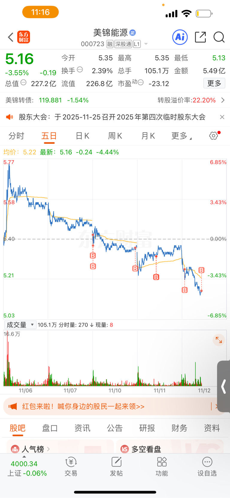 $美锦能源(SZ000723)$ 我是一个大韭菜