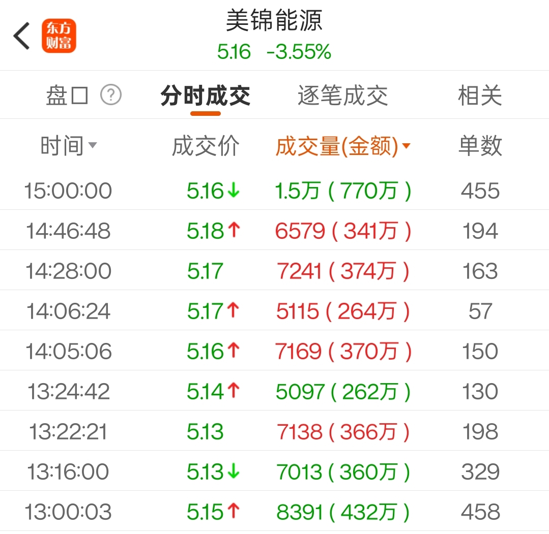 $美锦能源(SZ000723)$ 尾盘5000手以上的表现