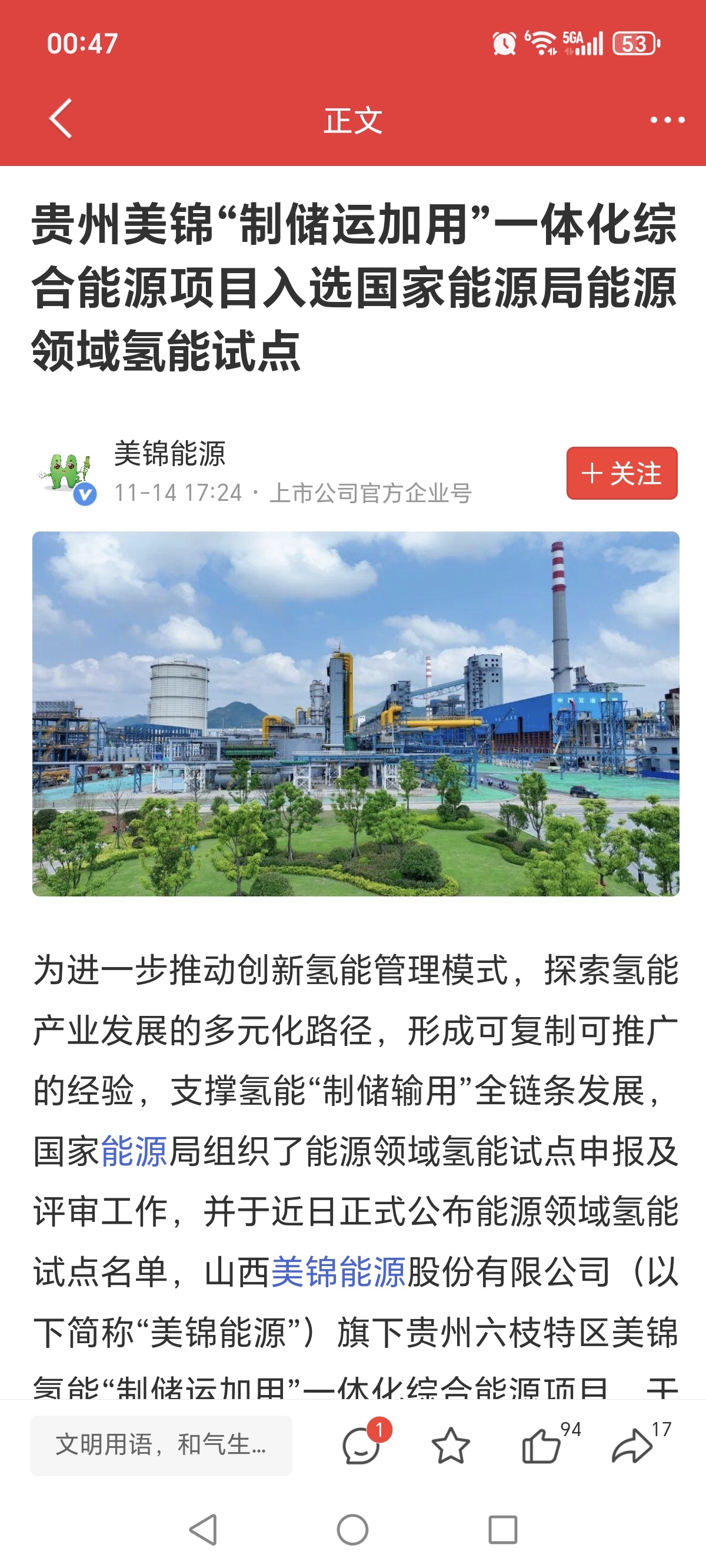 $美锦能源(SZ000723)$ 山西那个叫停是没有入选示范园区,贵州这个已经入选试点了,说放弃氢能源的是不是自己打脸
