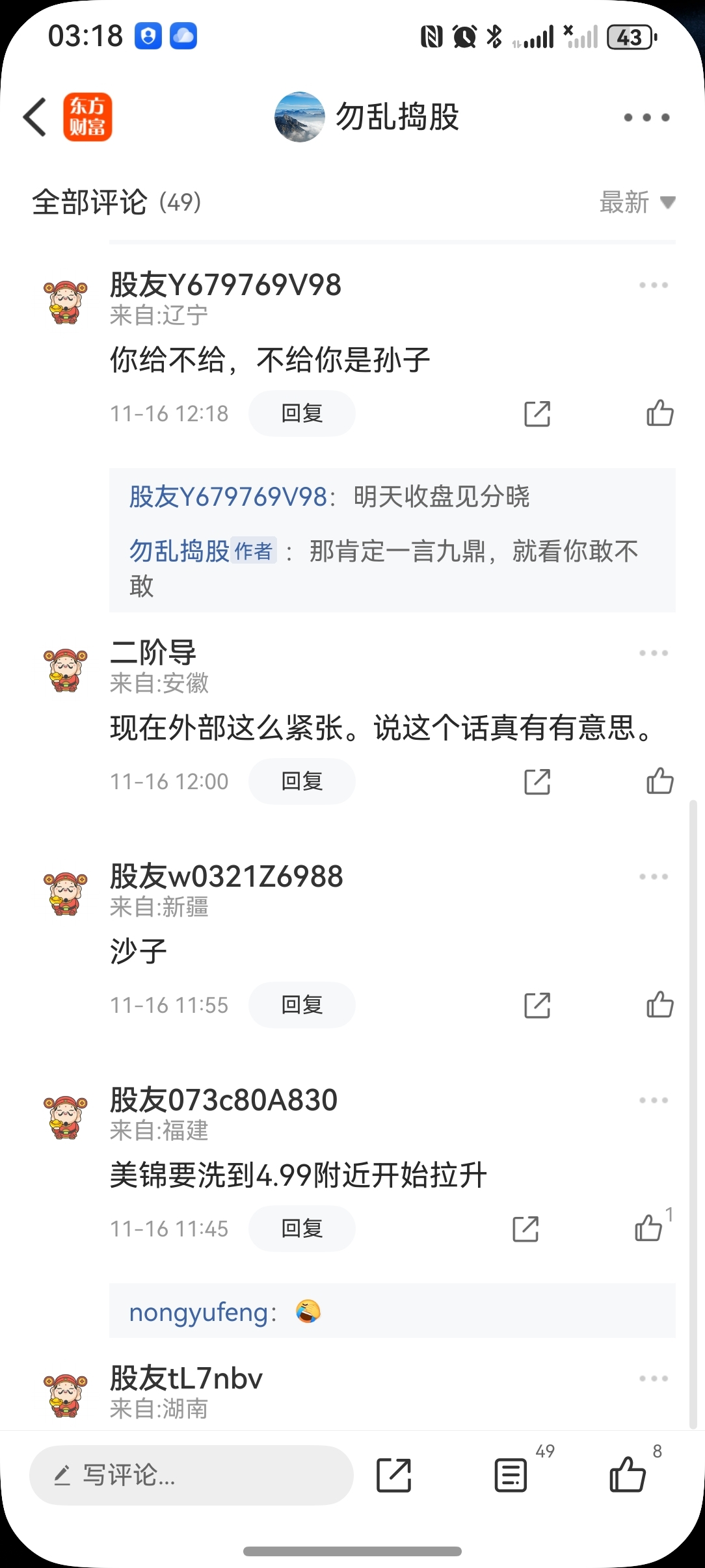温馨提示: 1.根据《证券法》规定,禁止编造、传播虚假信息或者误导性信息,扰乱证券市场;2.用户在本社区发表的所有资料、言论等仅代表个人观点,与本网站立场无关,不对您构成任何投资建议。用户应基于自己的独立判断,自行决定证券投资并承担相应风险。《东方财富社区管理规定》