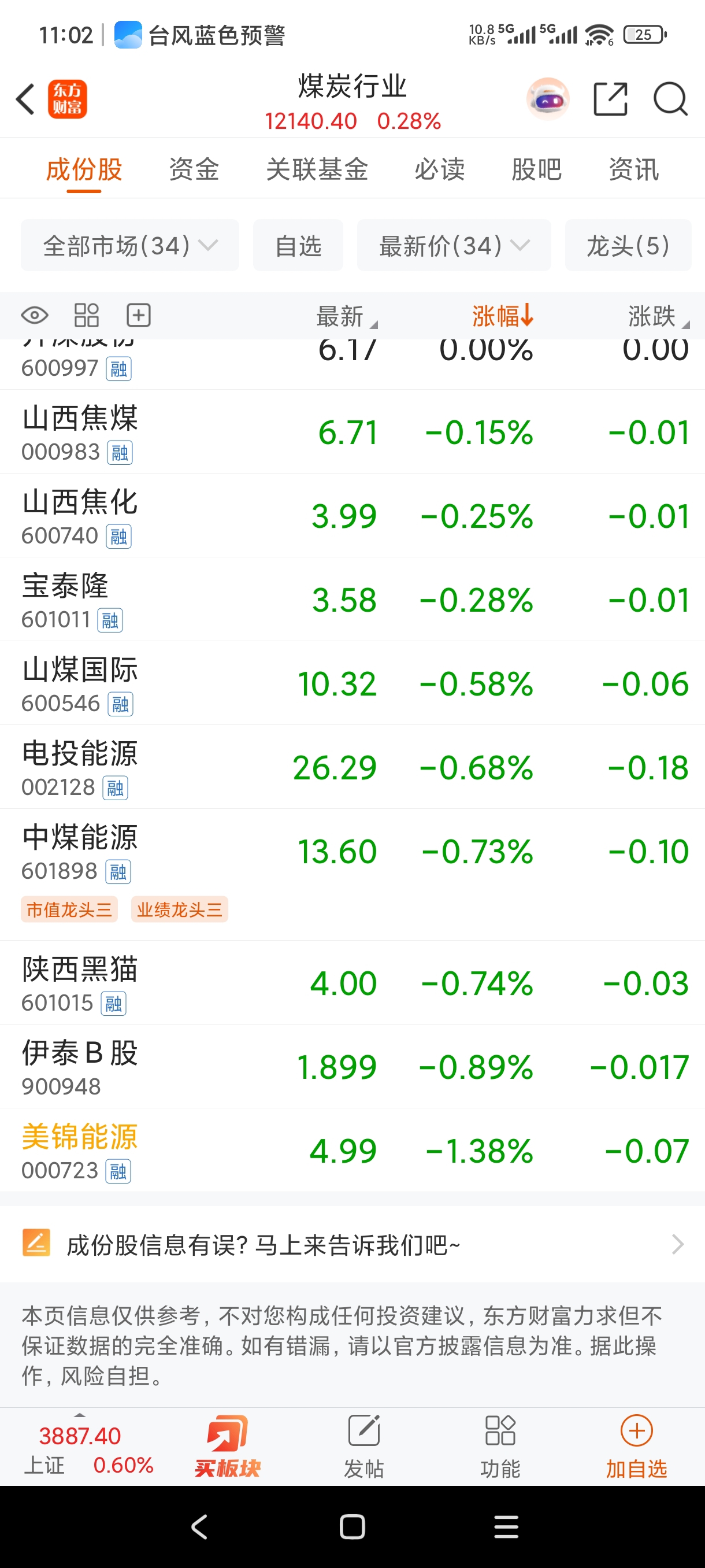 $美锦能源(SZ000723)$ 昨天当第一,涨7分,今天当倒数第一,跌7分。