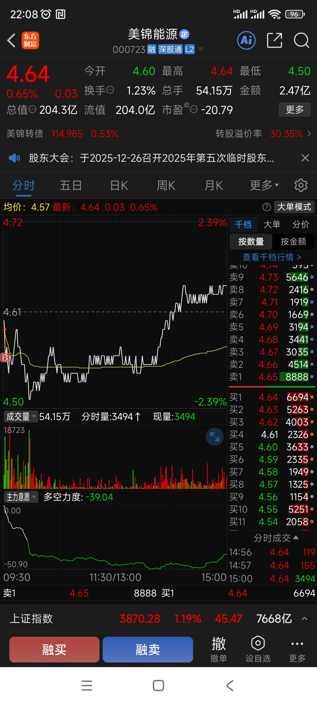 $美锦能源(SZ000723)$ 上午瞎忙进早了,后来4.53一直未成交,成本4.7明天冲高减减仓