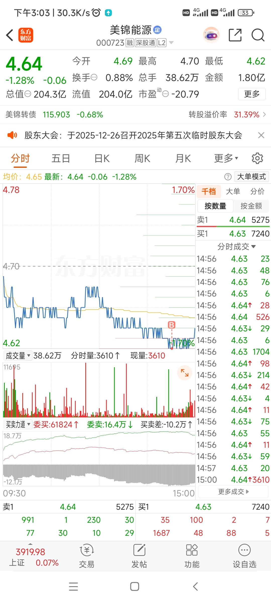 $美锦能源(SZ000723)$ 早上挂的4.62买到了