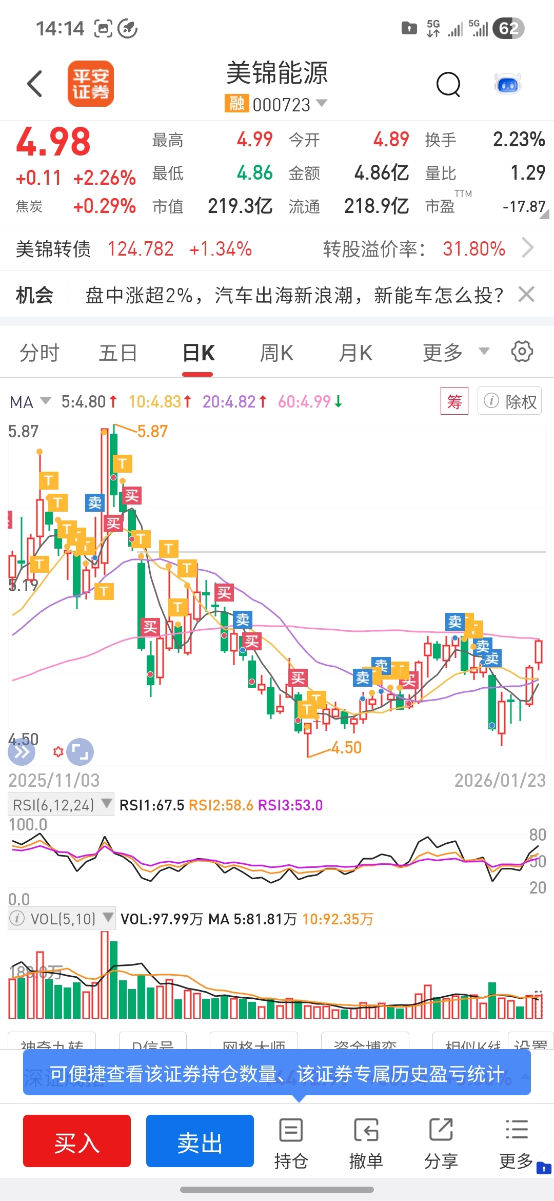 真的我不卖是不会涨的,亏10个点割肉的