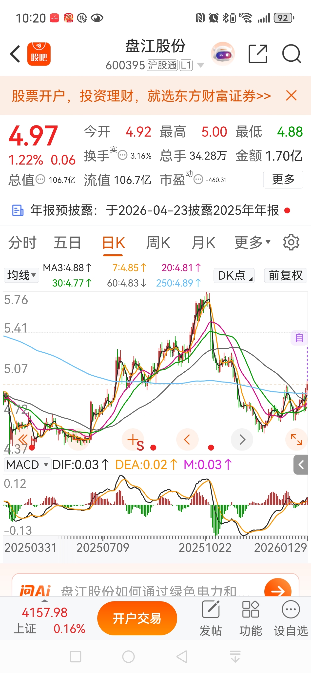比较下来还是盘江比美锦好,明天一早杀入,盘江业绩扭亏,增长220%,盈利过亿;盘
