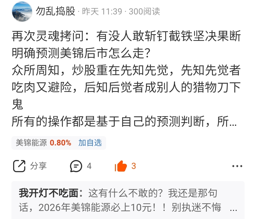 2026年初,又一位股友“开灯不吃面”跟我说2026必上10!