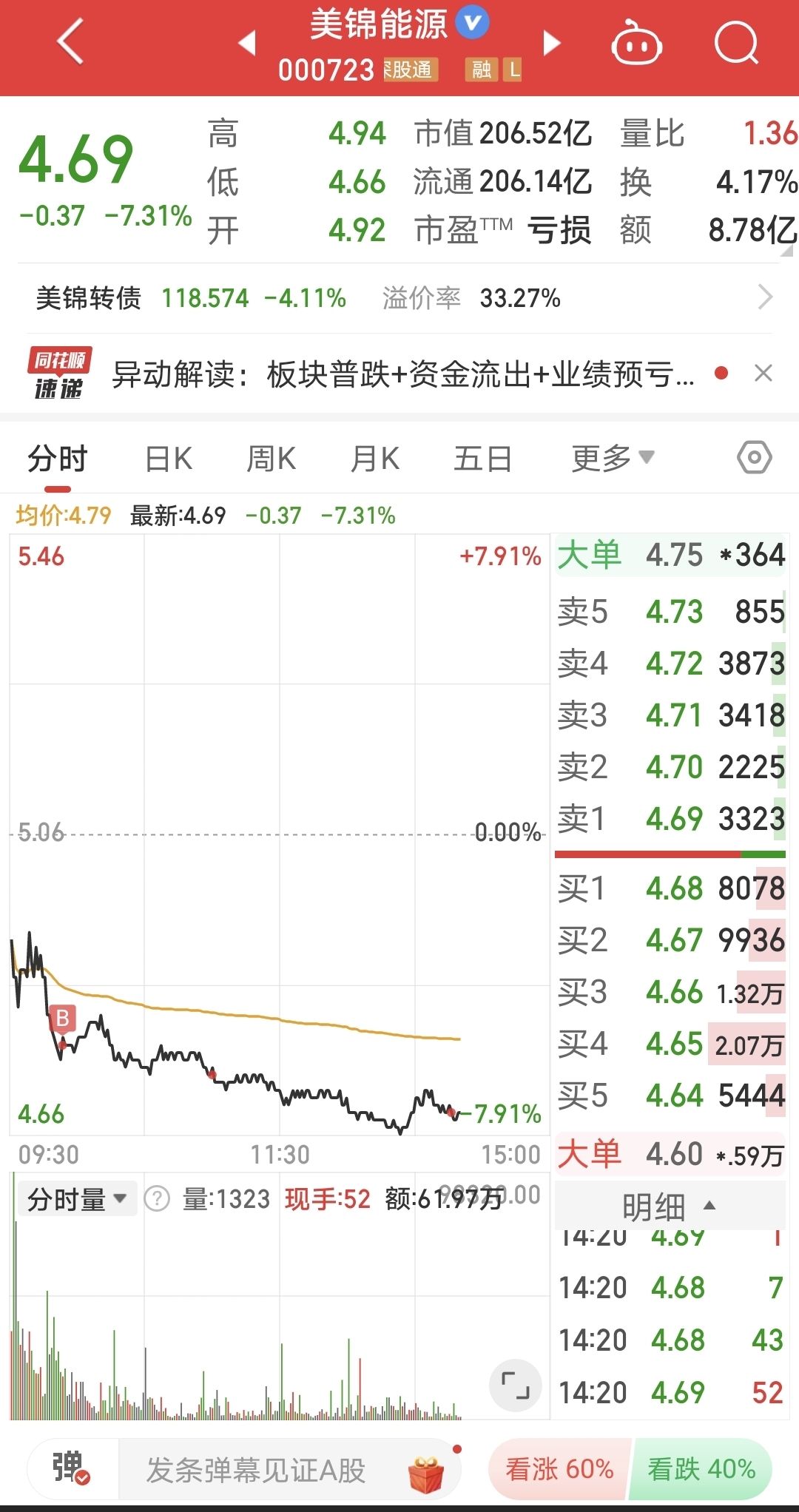 无所畏惧,4.69继续真金白银抄底买入一万股!!!