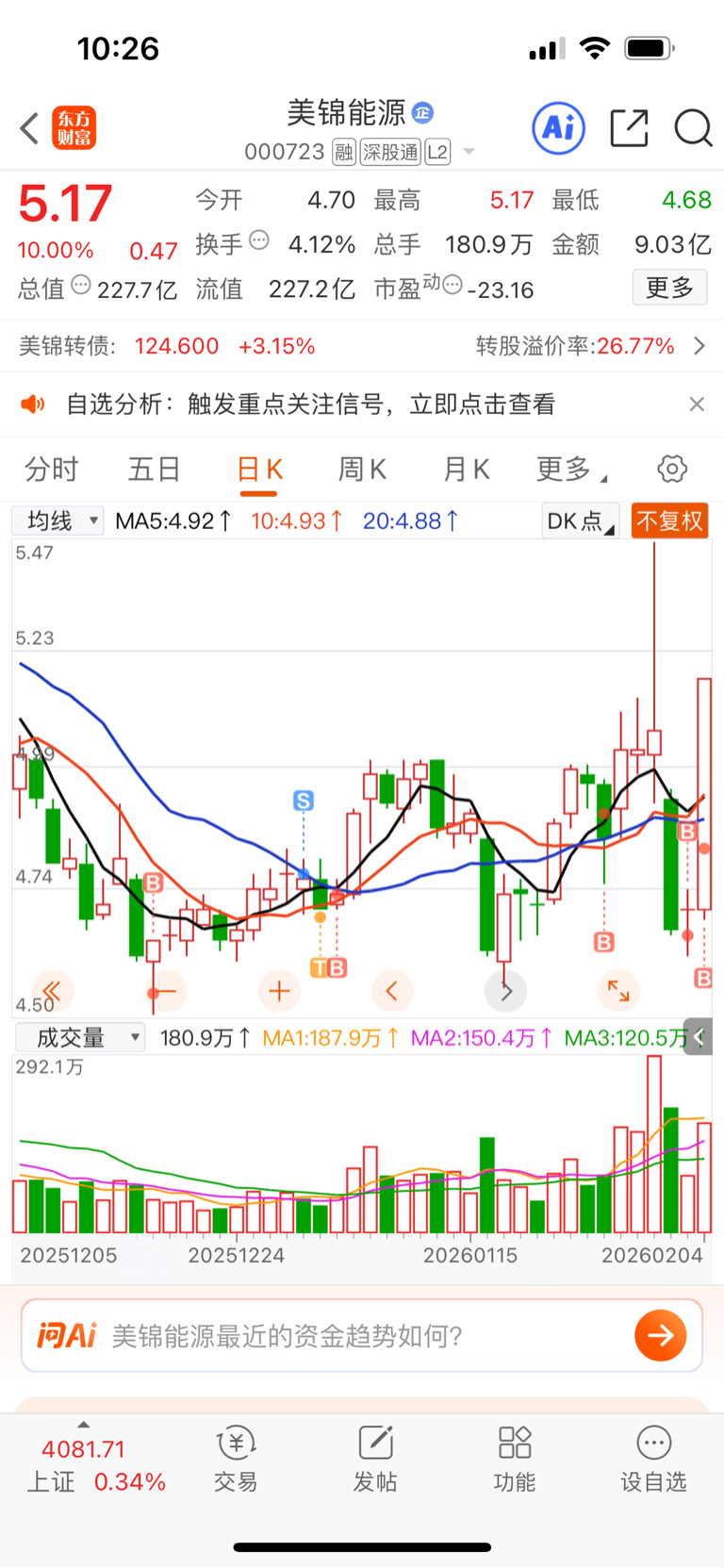 $美锦能源(SZ000723)$ 我这坚守的也苦,一路火花带闪电,