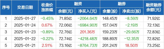 京东方A:融资净偿还2064.64万元,融资余额71.85亿元(01-27)
