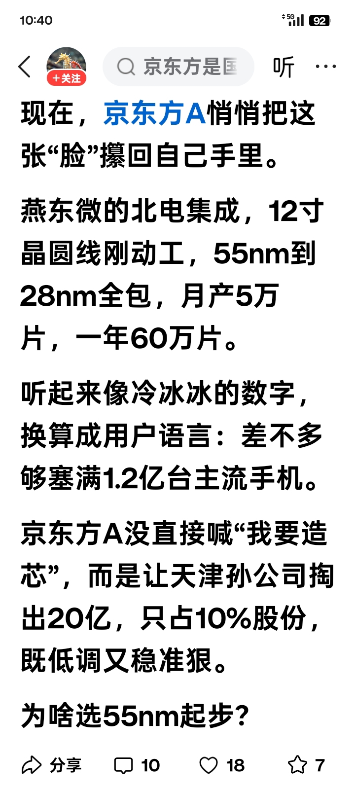 $京东方A(SZ000725)$ 京东方生产芯片,股价十元钱不贵