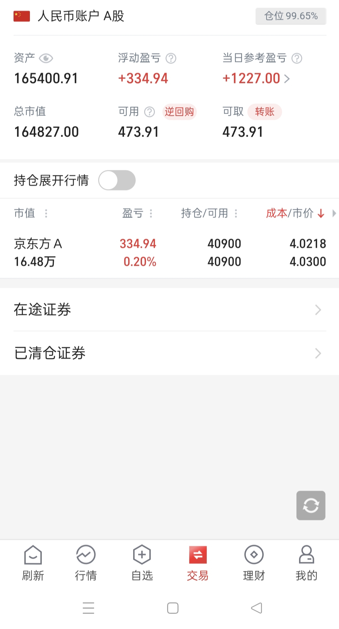 4.02元满仓买入京东方4万多股,1000年都不长,我就不信你动都不动