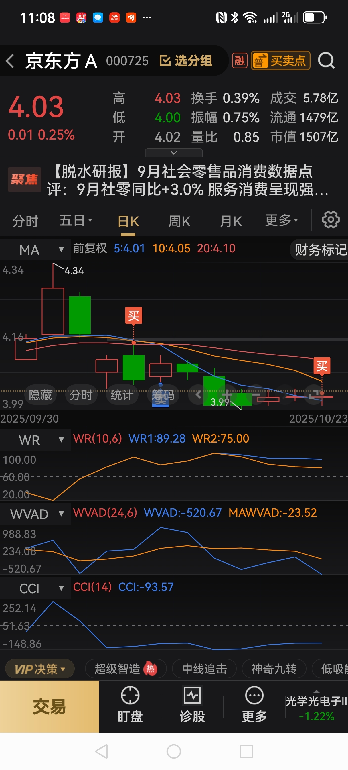 京东方,清仓4.10,10月23号,已建仓4.01。