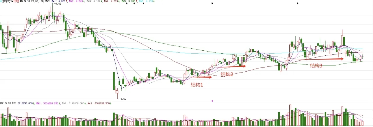 今天收出十字星,短线来看,股价下周初有调整。但是,调整幅度有限,大概率在半年线上方震荡。这里是结构3的下轨,所以,很可能是中期调整结束的位置。图中标注的前两个结构突破,意味着股价进入到新的上涨周期。结构3是结构2突破后的回踩,是正常的调整。结构3突破,意味着波段上涨在即。只是为了修复半年线,所以才有了最近的调整。