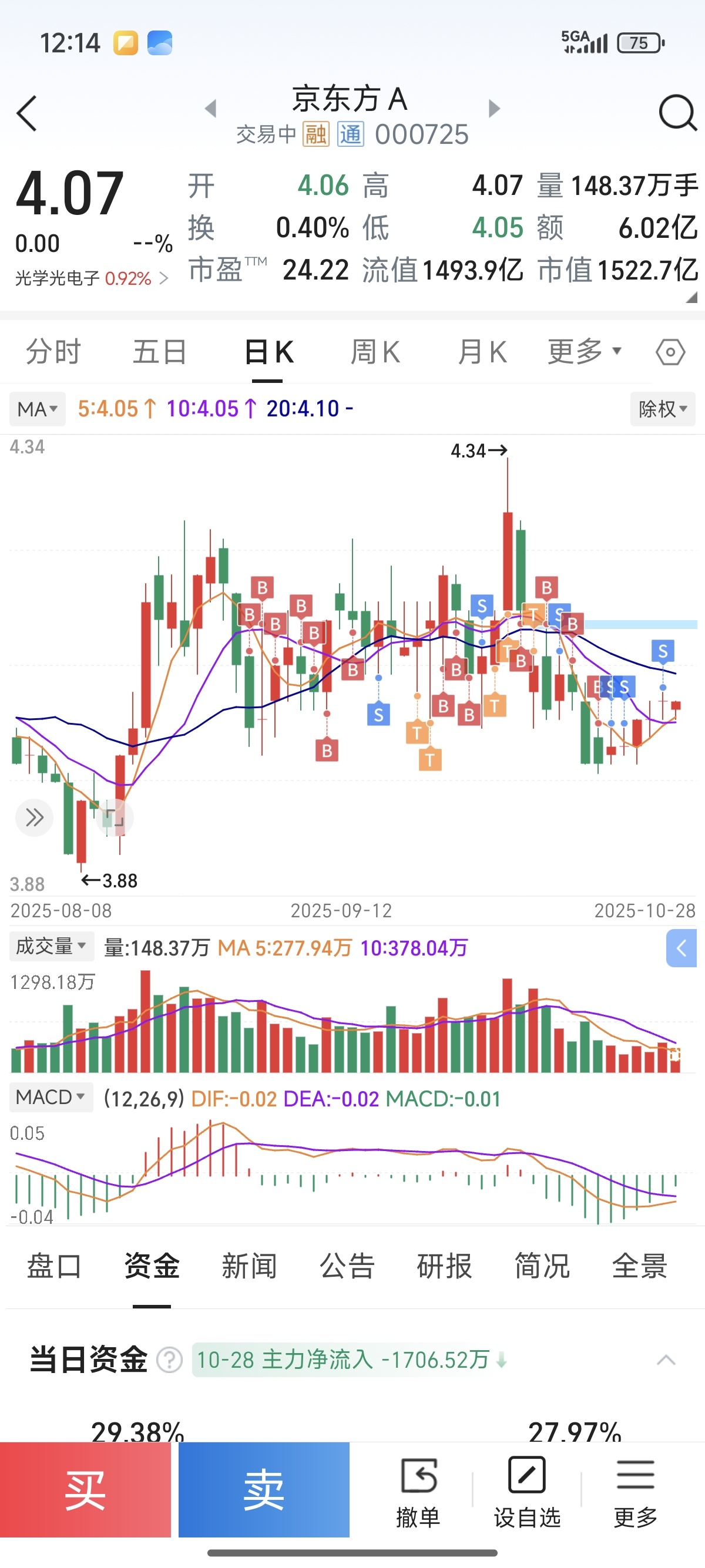 $京东方A(SZ000725)$ 我追高富联都已经盈利15个点了,目前亏最多的就是狗东,因为感觉狗东稳,所以重仓,结果就大亏