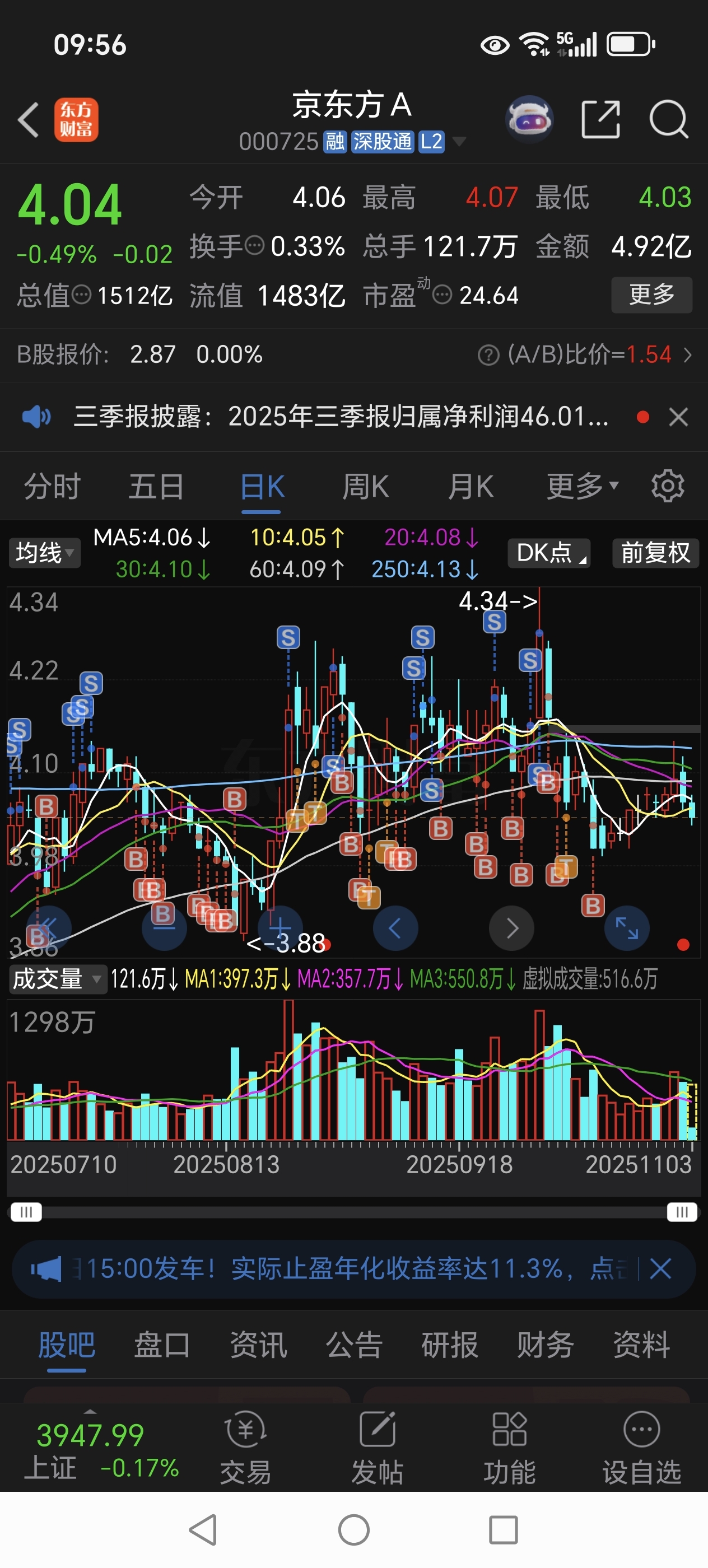 $京东方A(SZ000725)$ 这半个月波动太小了,像我这种天天做T的竟然都没交易,这几天差点都忘了我还有这个股。