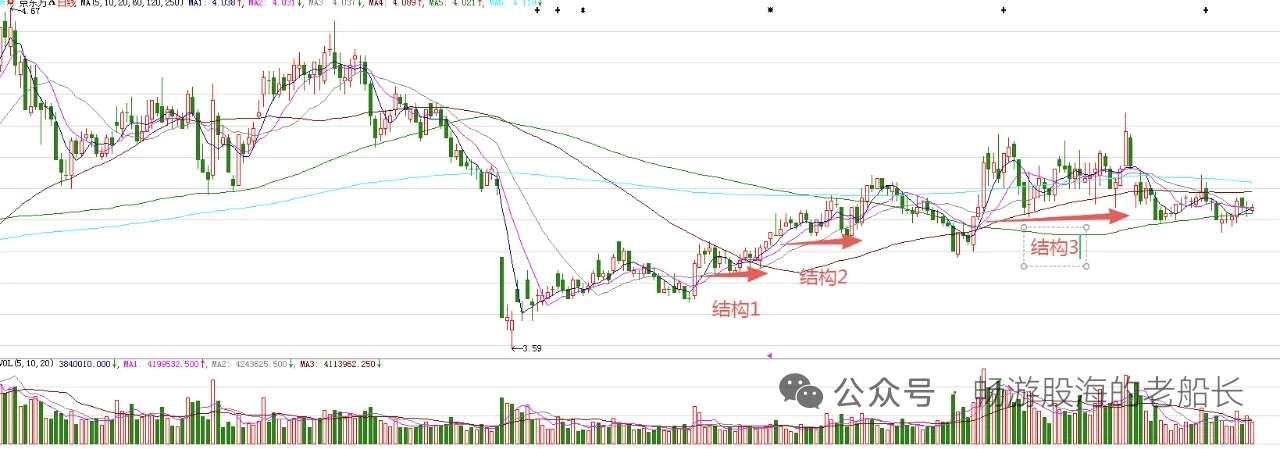 $京东方A(SZ000725)$ 收出小阳线,回补了昨天的下影线,弥补了技术面的不足。周五,股价大概率上涨。近期,构筑了潜在的双底形态,就差突破信号出现了。图中标注的结构1和结构2突破,意味着股价处在上涨趋势。结构3突破,意味着波段上涨不远了。近期的调整,是结构3突破后的回踩,空间已经到了。