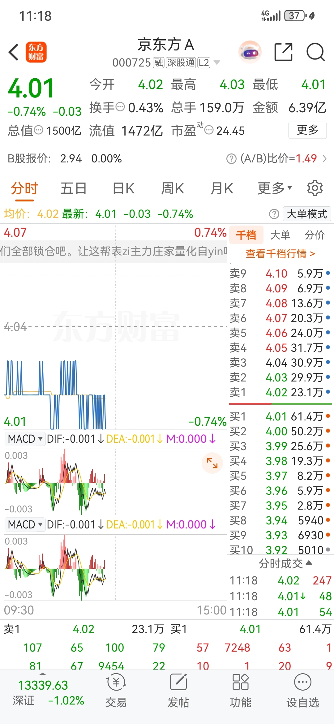 $京东方A(SZ000725)$ 证监会托的61万手有成交吗,压的21万手有成交吗,怎么解释