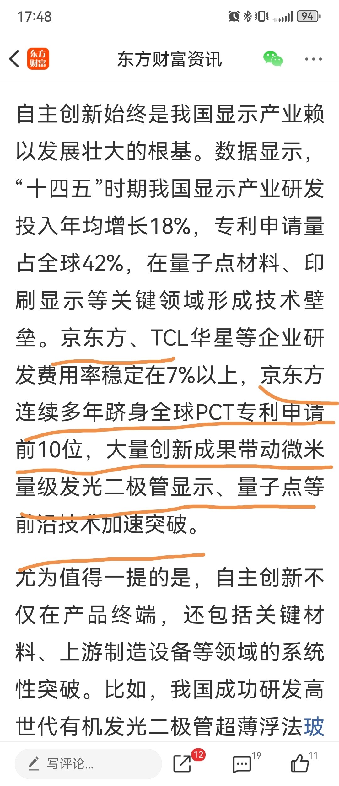 $京东方A(SZ000725)$ 人民日报发文“中国屏”靠什么逆袭?多次点到京东方。