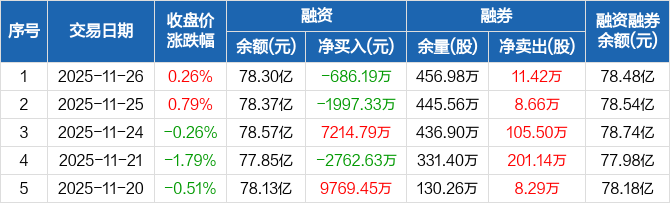 京东方A:融资净偿还686.19万元,融资余额78.3亿元(11-26)