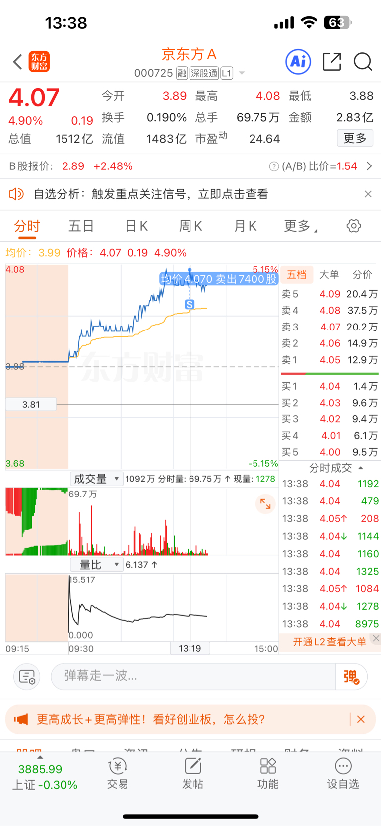 $京东方A(SZ000725)$ 保本全卖了,拜拜