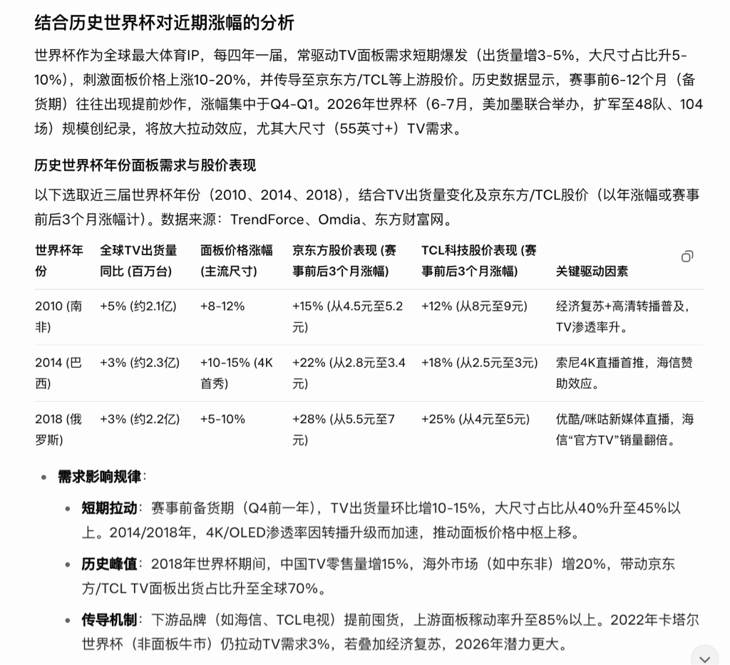 不愧是散户大本营,上涨是面板出货超预期,2026年世界杯利好,面板已经成熟了,本