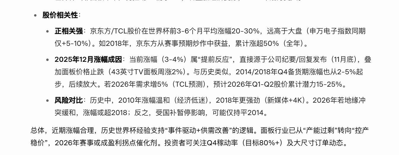 不愧是散户大本营,上涨是面板出货超预期,2026年世界杯利好,面板已经成熟了,本身就是周期性行业不能指望像科技半导体医药那些,但是胜在稳定。