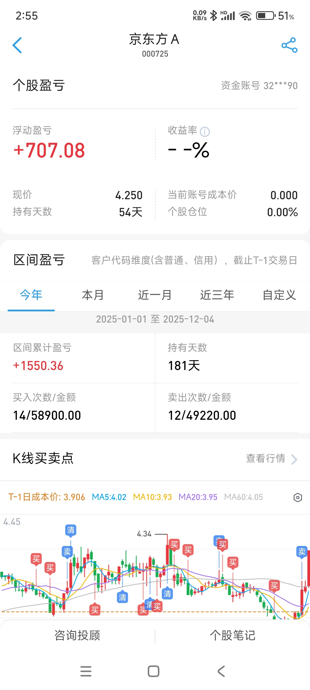 $京东方A(SZ000725)$ 这个股赚钱太难了,清仓走了