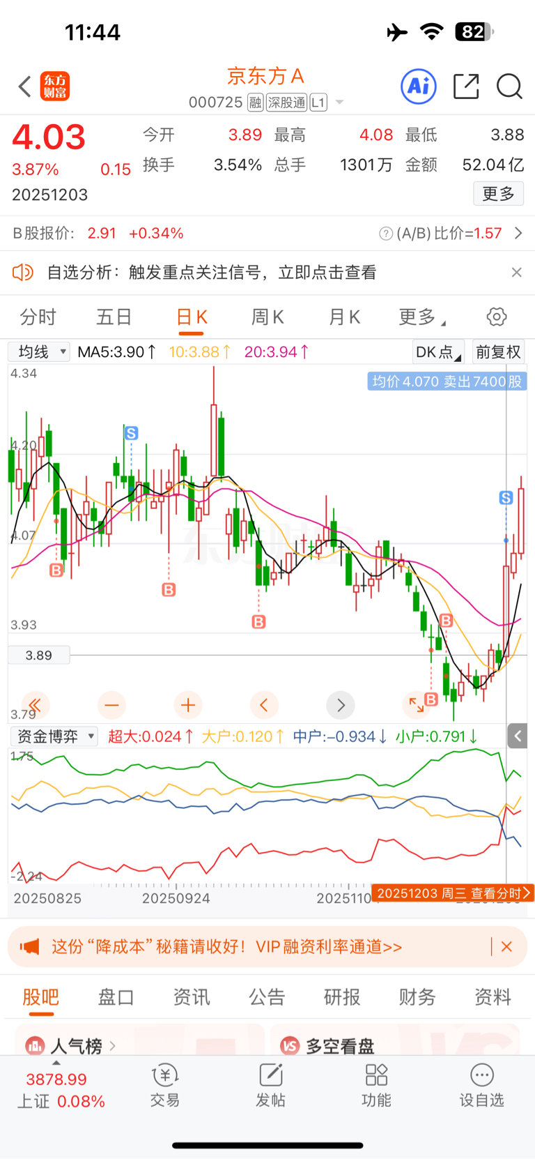 $京东方A(SZ000725)$ 有没有踏空的朋友,我前天被洗出去了