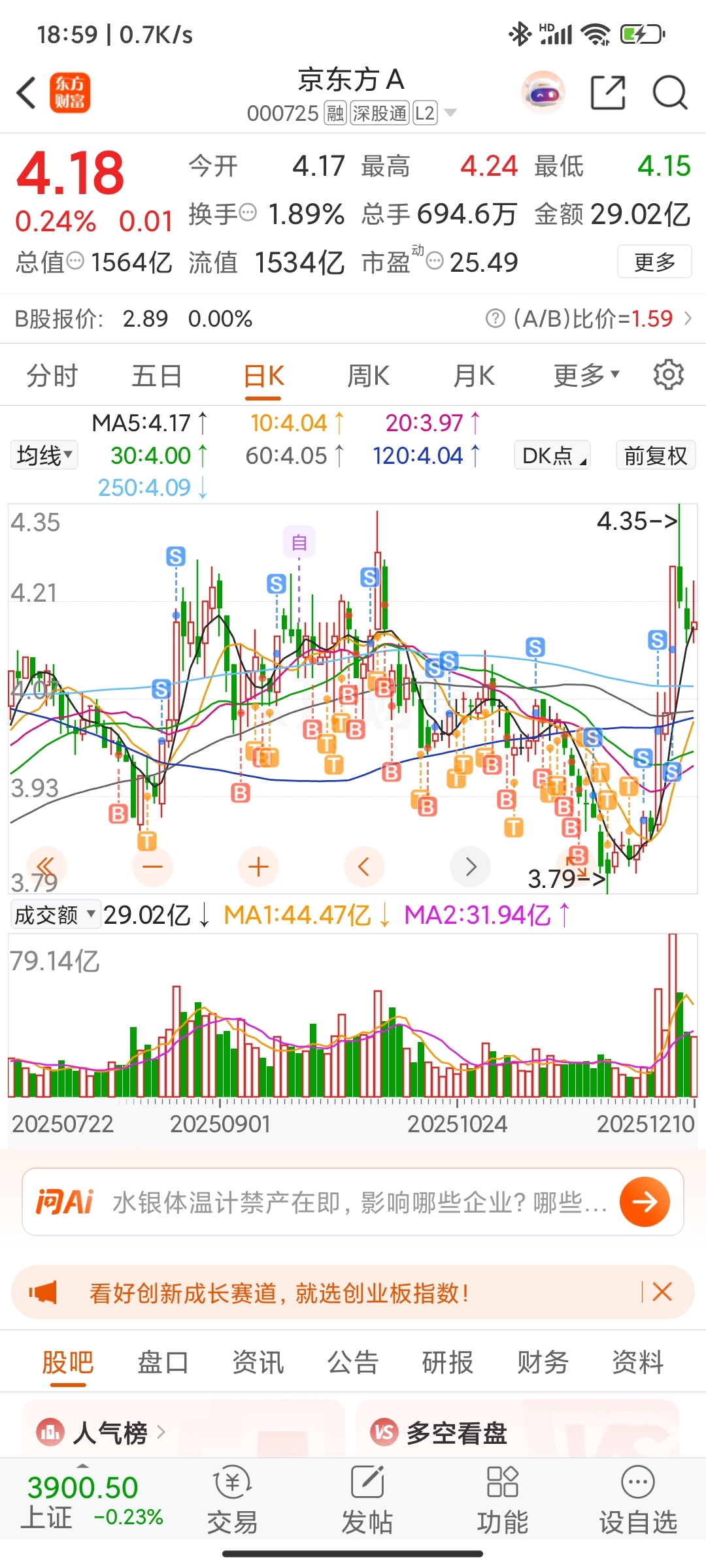 $京东方A(SZ000725)$ 这几个交易日没有买卖 怕卖飞也怕被套