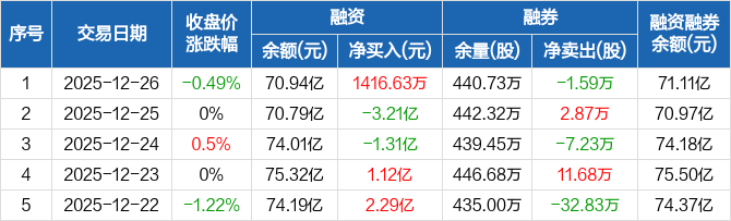 京东方A:融资净买入1416.63万元,融资余额70.94亿元(12-26)