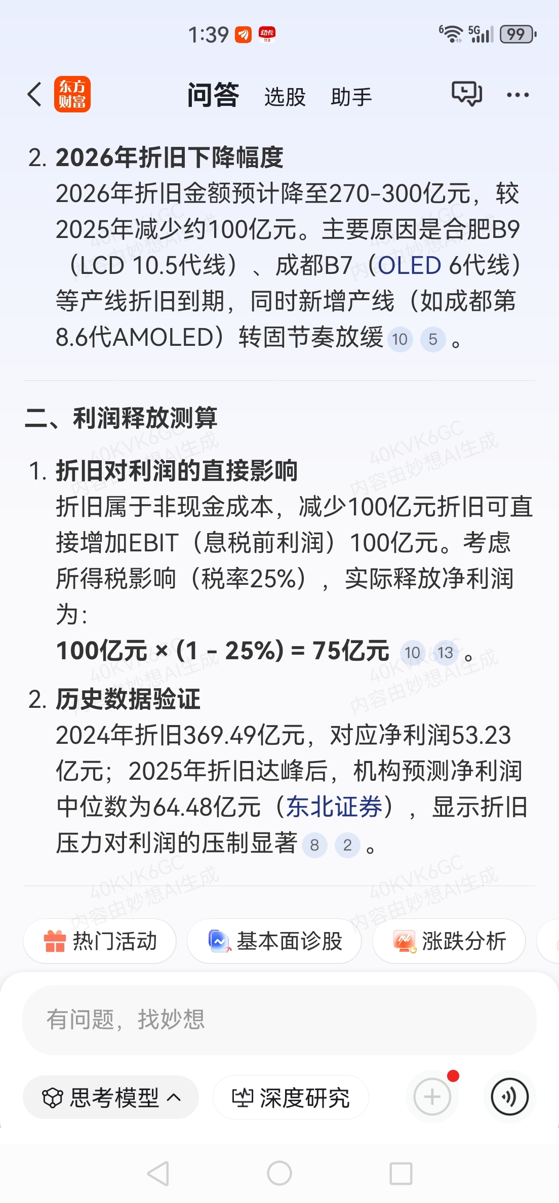 ai说今年京东方折旧费用大幅下降,能增收75亿利润,真的假的?