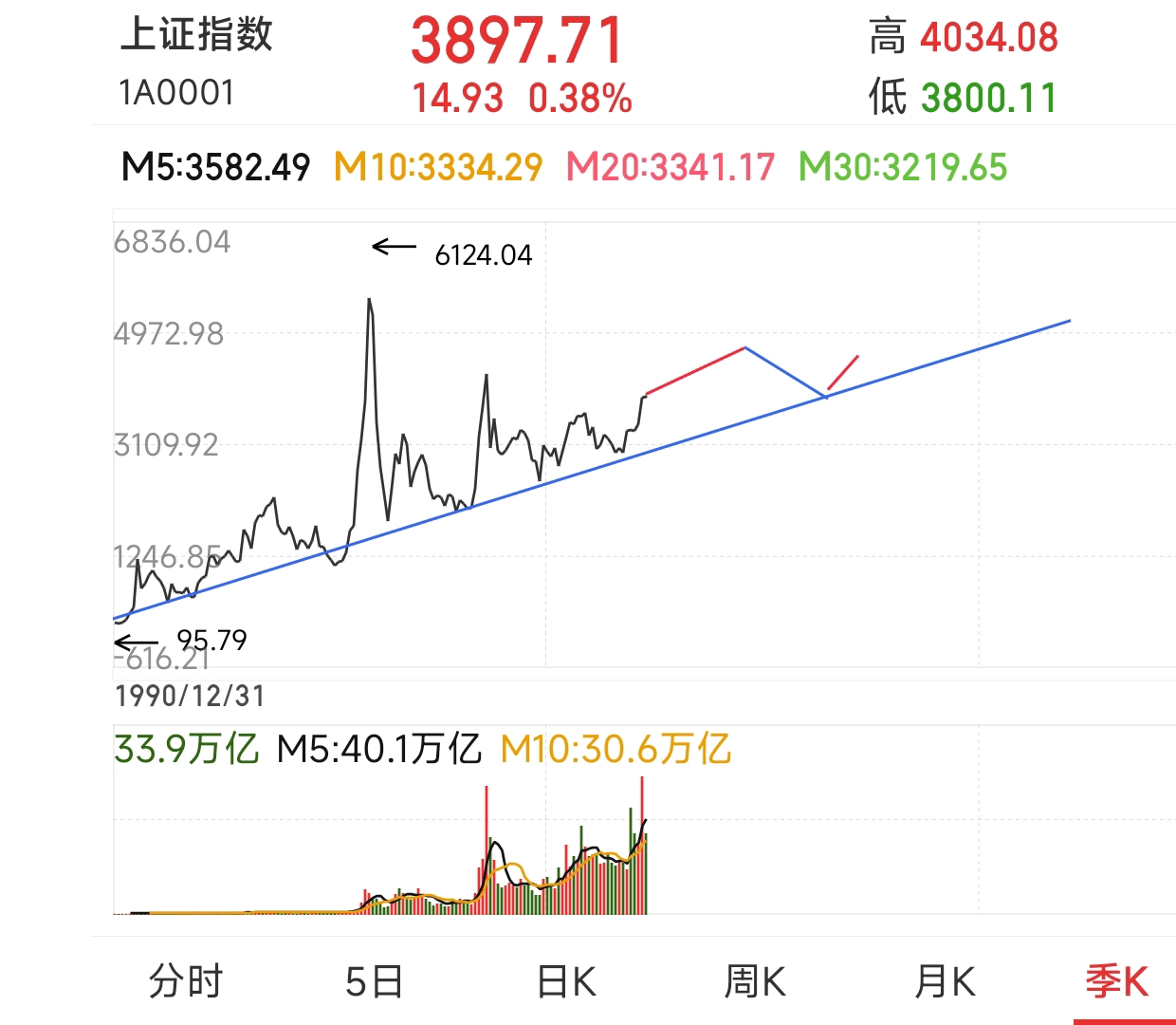 $鲁 泰A(SZ000726)$ 给兄弟们一个参考,看季线,1996年到2001年的走势!也就是说我们这波行情一直要涨的2030年才会大幅调整!