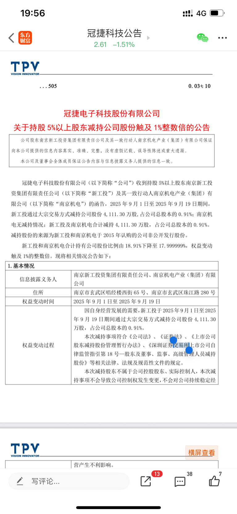 $冠捷科技(SZ000727)$ 二股东高位出货了,跑啊!要大跌到1.8元了