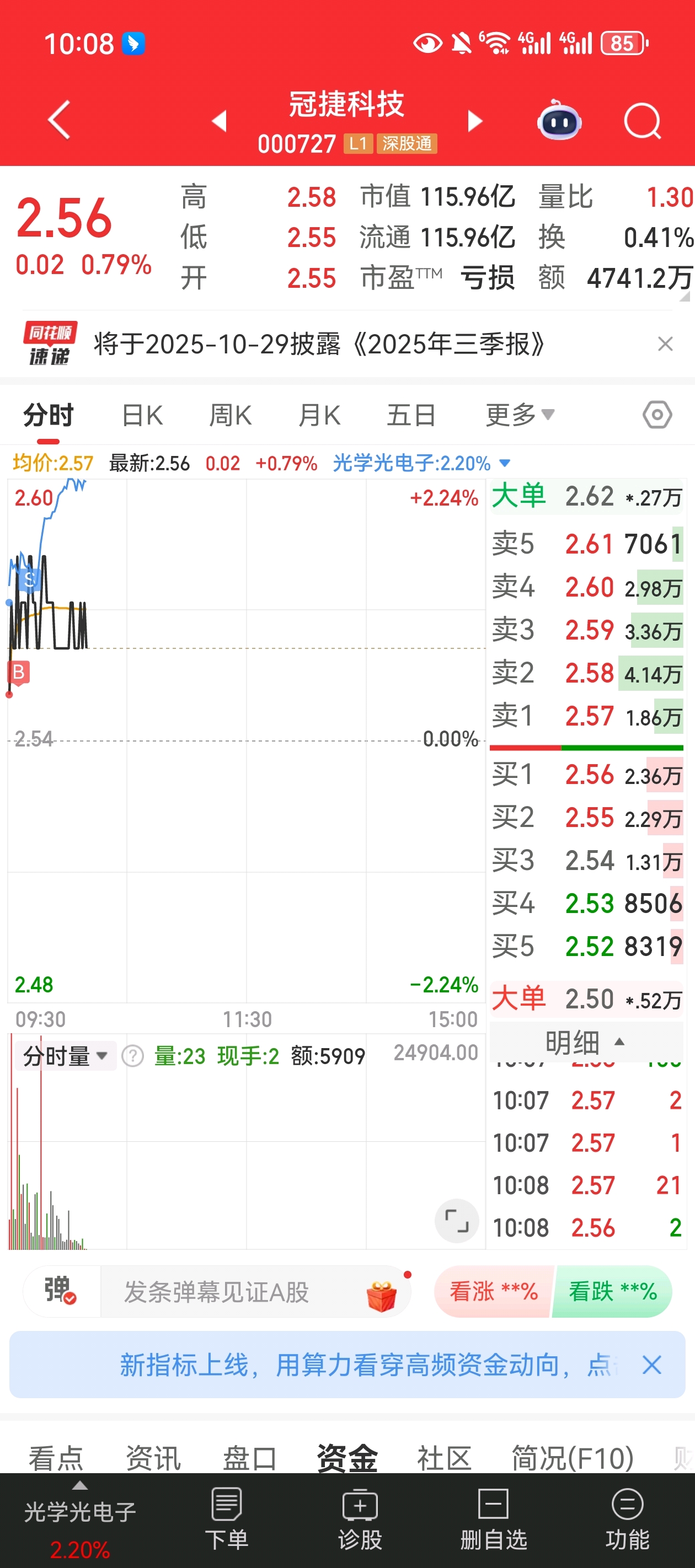 $冠捷科技(SZ000727)$ 上周五买的,进来打个短