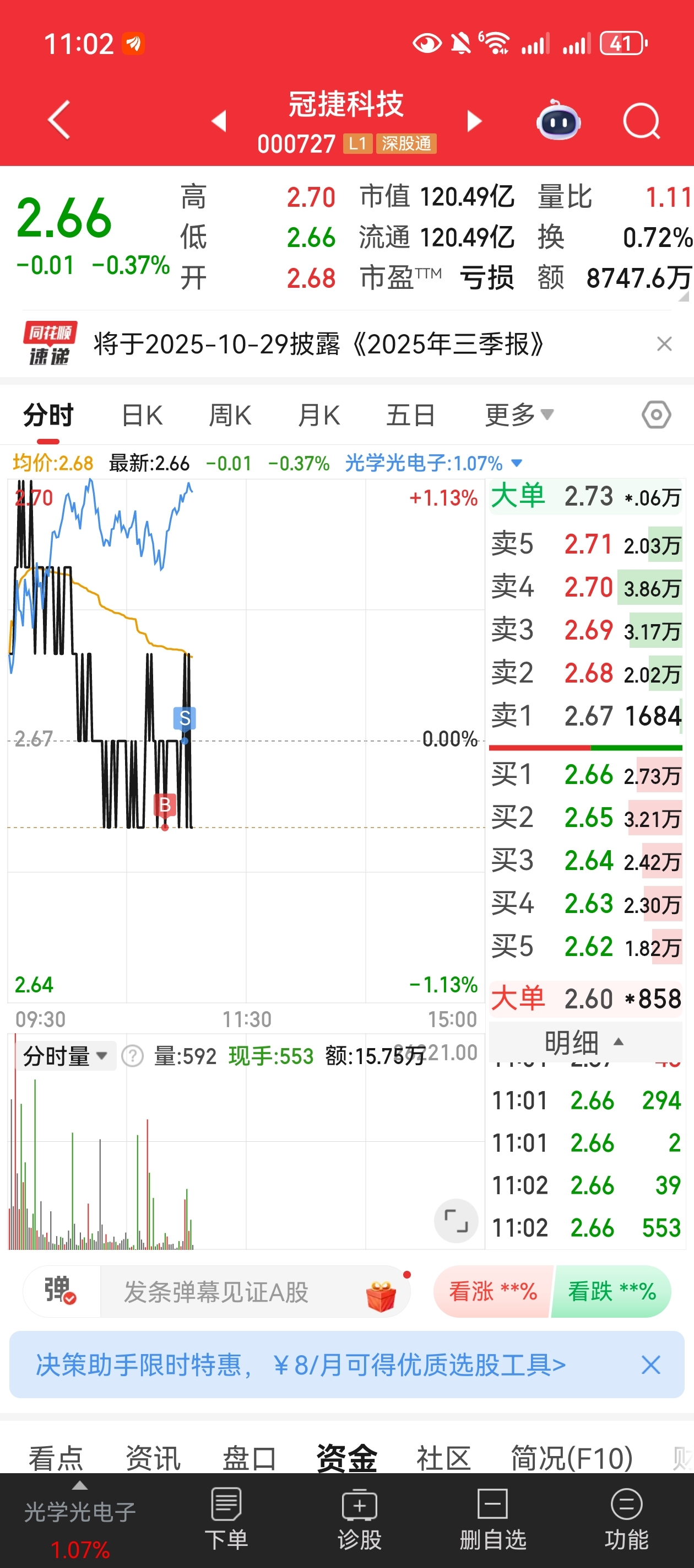 $冠捷科技(SZ000727)$ 又做T了,好几百到账