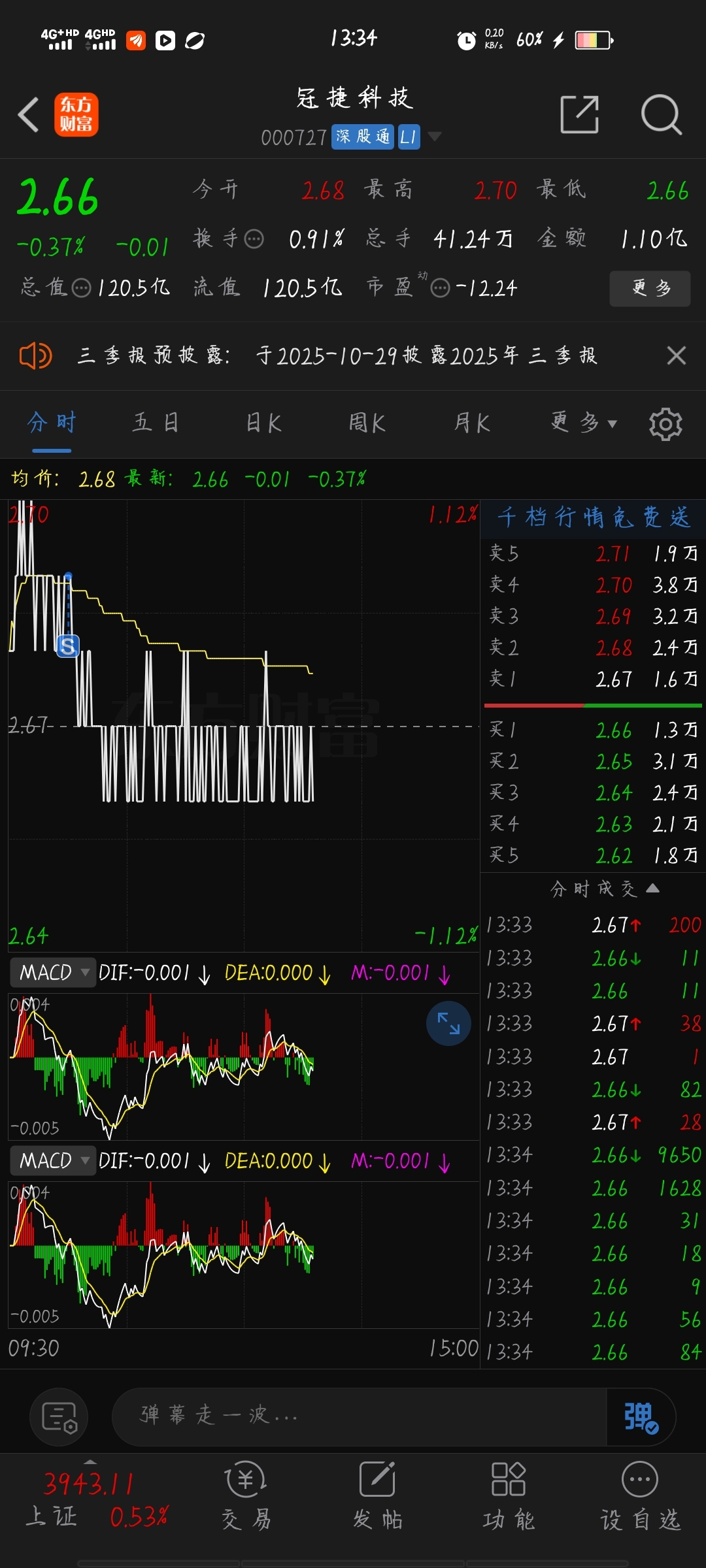 $冠捷科技(SZ000727)$ 269卖了没有上涨,还真卖对了