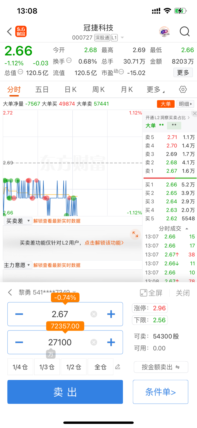 $冠捷科技(SZ000727)$ 清半仓,2.3再接回