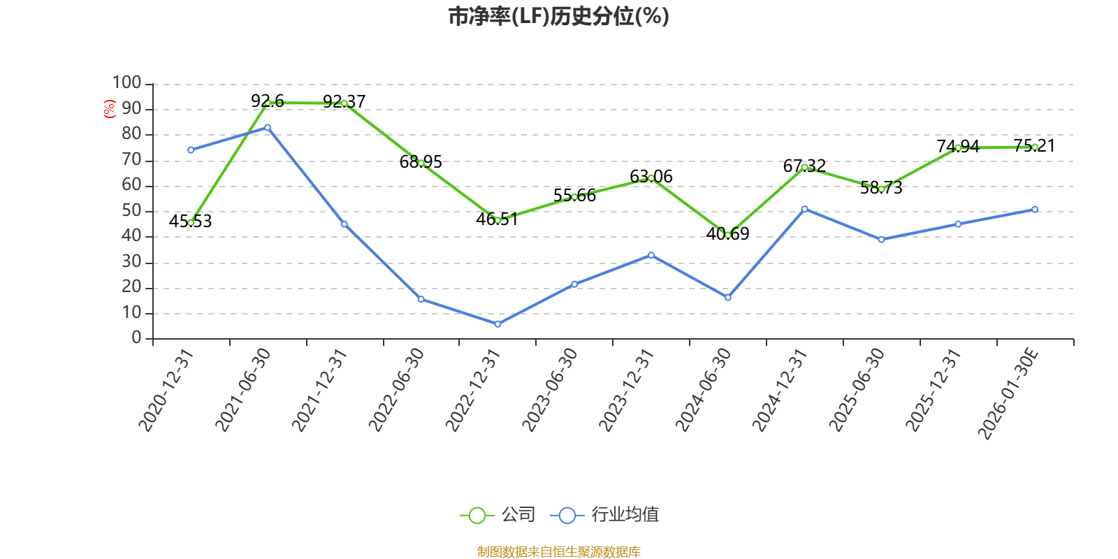 市盈率、市净率为负时,不显示当期分位数,会导致折线图中断。