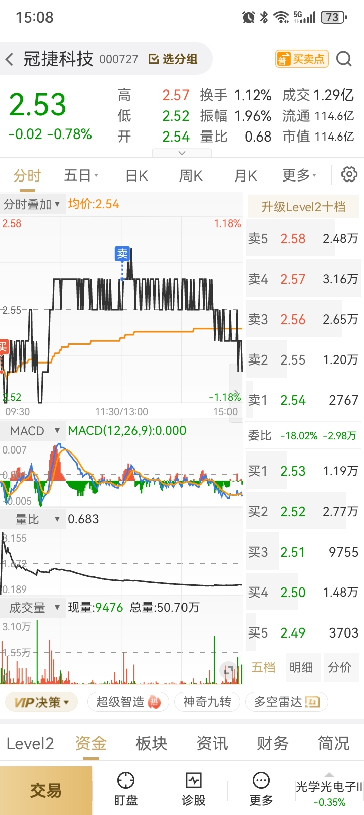 $冠捷科技(SZ000727)$ 它的规律就是上涨2分,下砸4分,玩死你!